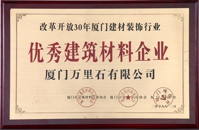2009年度公司被被评为“改革开放30年厦门建装饰行业 优秀建筑材料企业”